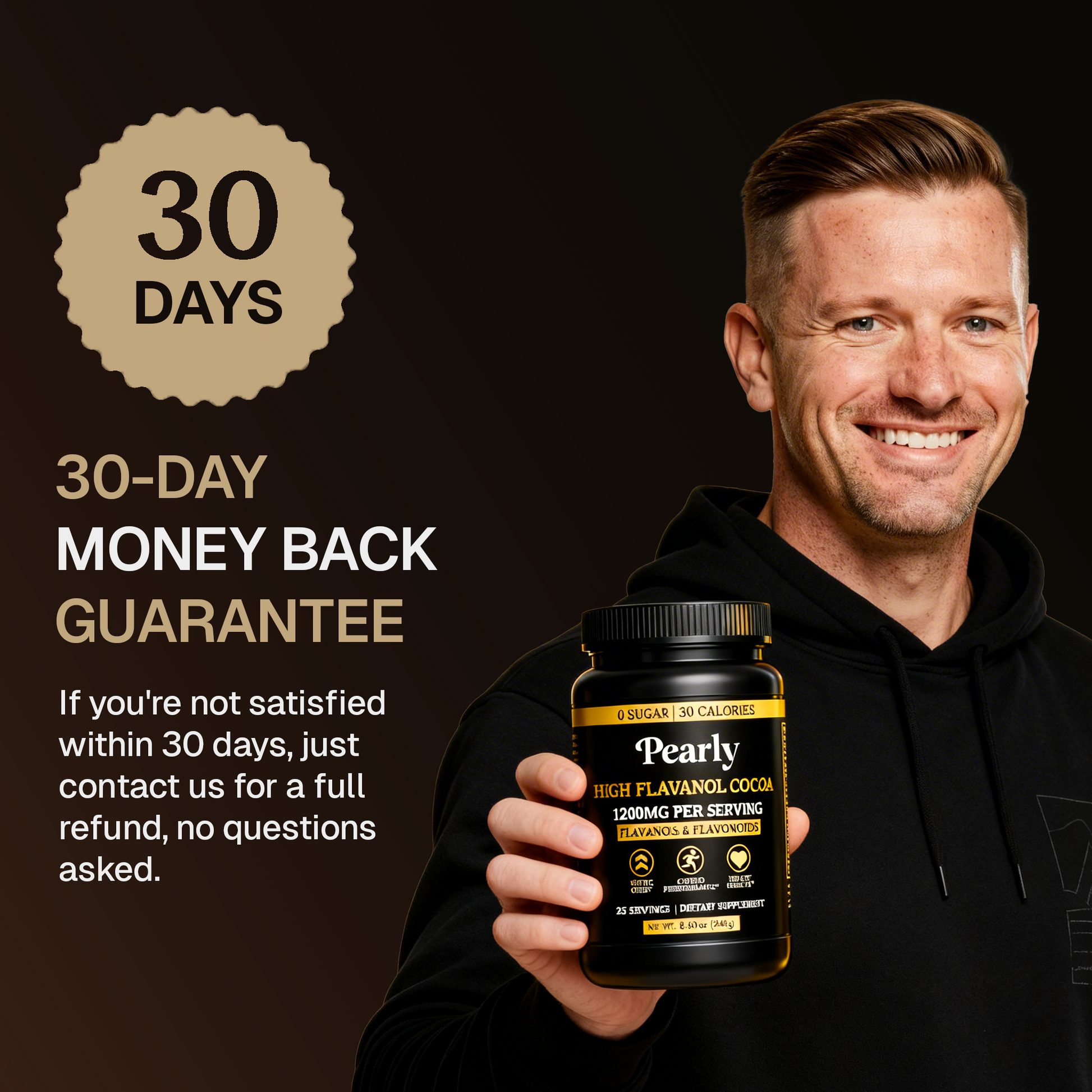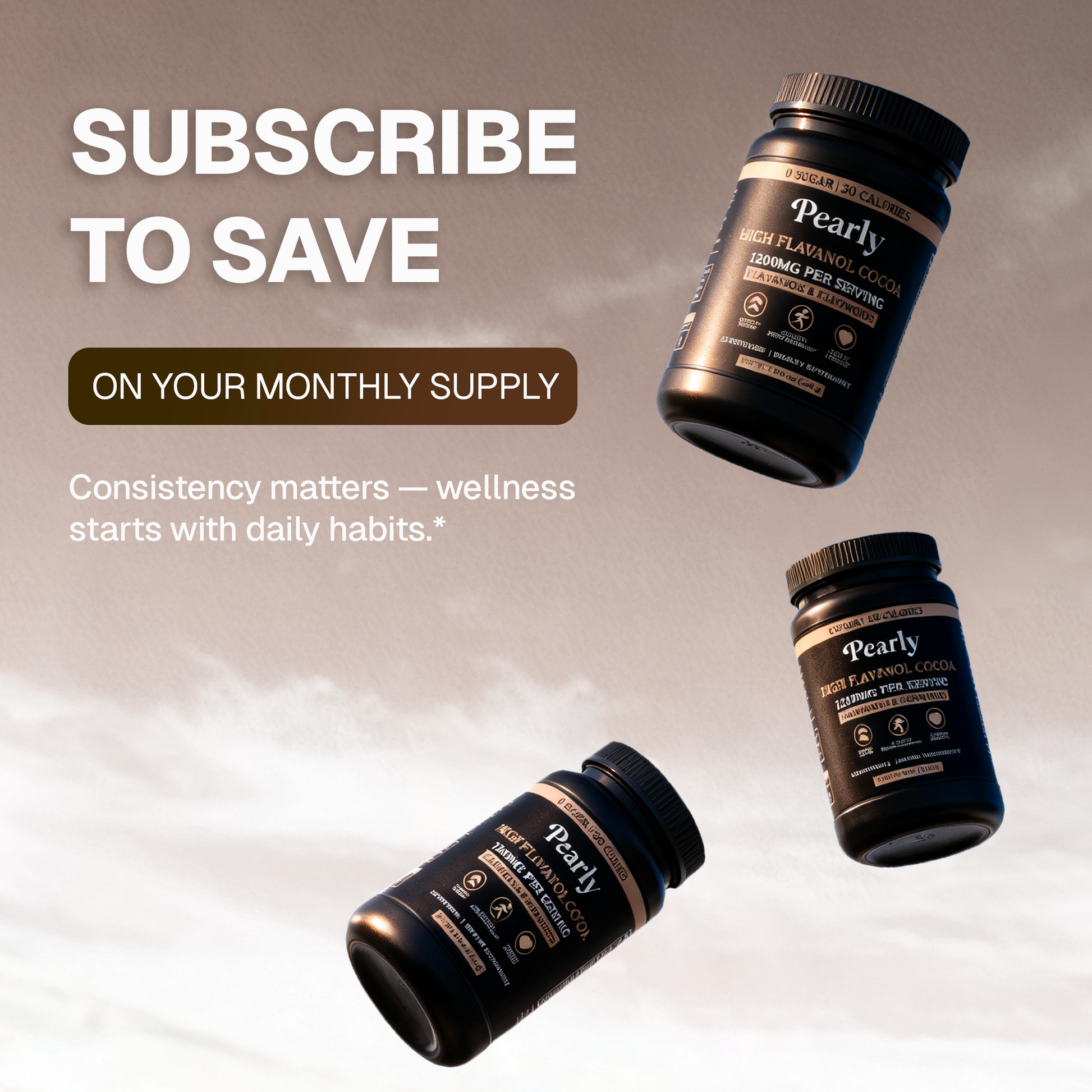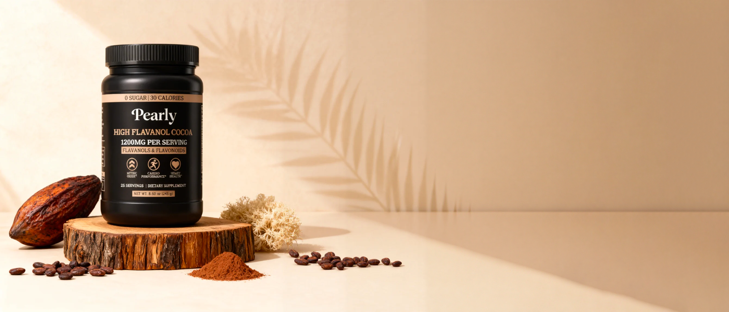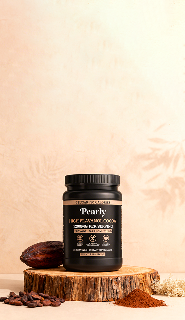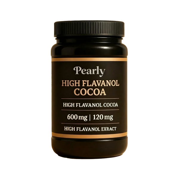 Pearly High Flavanol Cocoa is sourced from high-flavanol cocoa and carefully processed to preserve potency. Each serving is formulated to deliver a clinically inspired 600mg of cocoa flavanols — something standard cocoa powders typically do not provide.