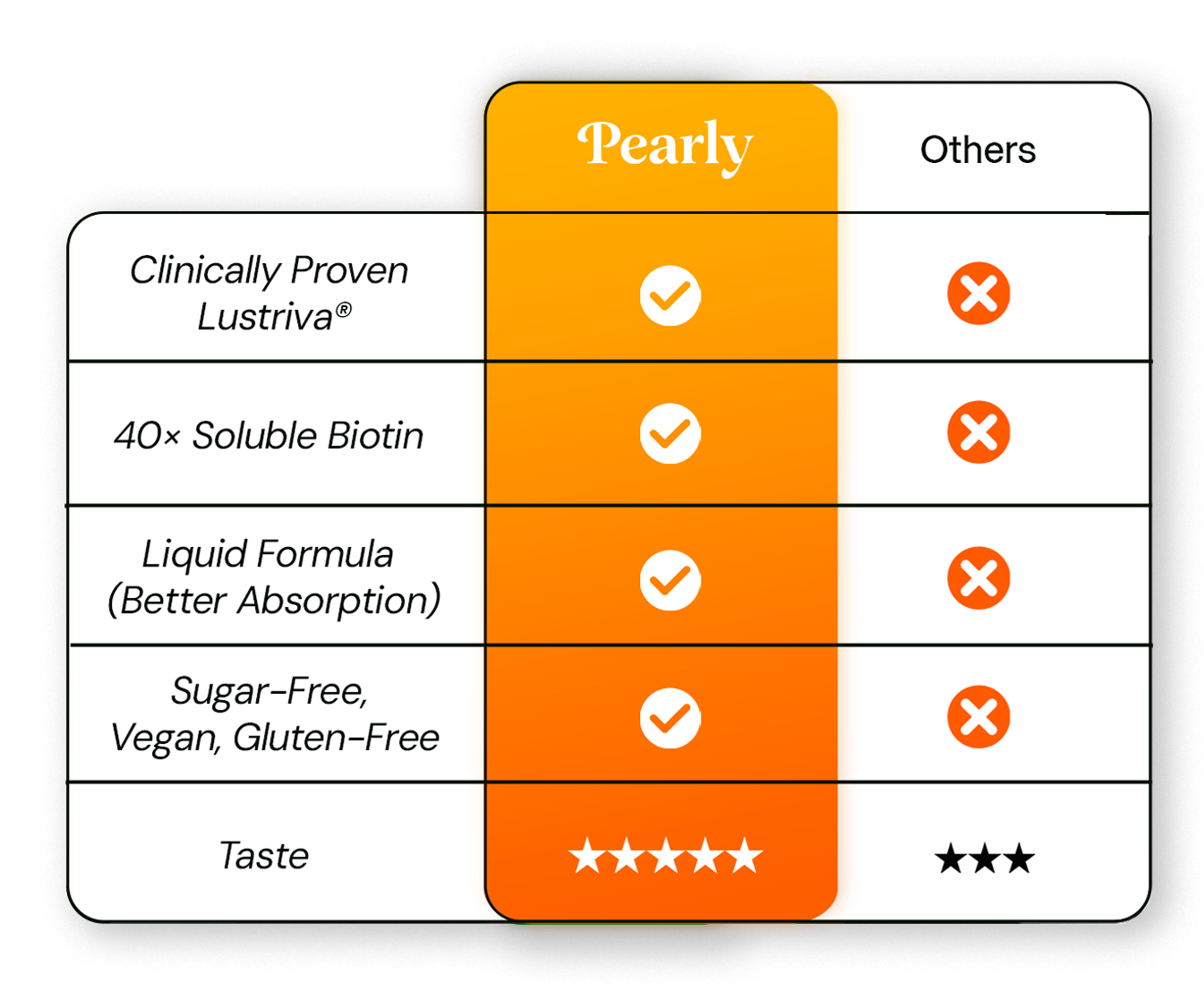 Pearly is different: every nutrient in Daily Glow was chosen for its clinical efficacy, superior absorption, and synergistic impact on hair, skin, and energy.