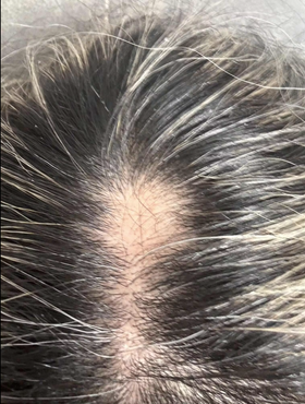 Likely visible signs of early fullness and better coverage, especially near the part and crown.
