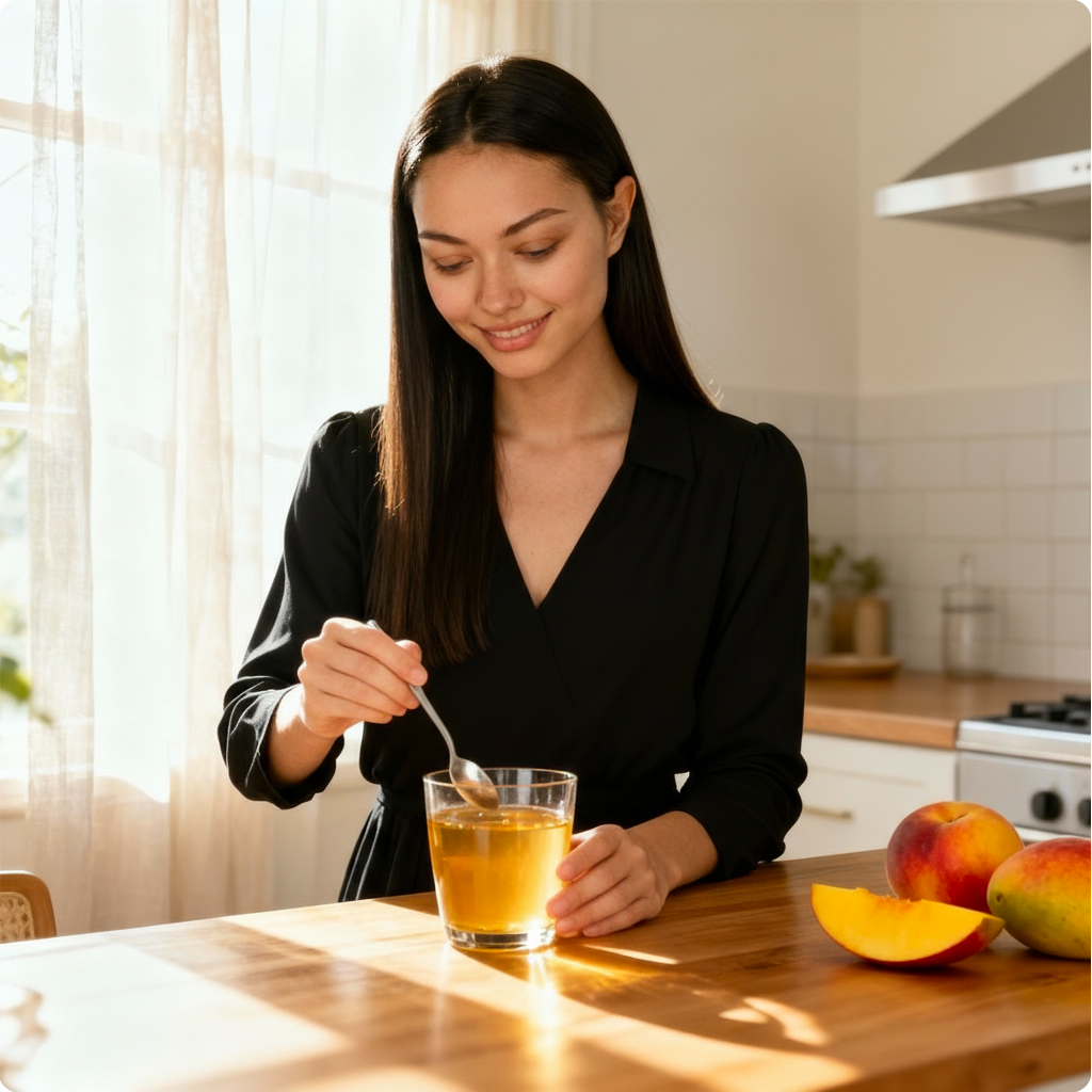 A delicious Peach Mango ritual designed to fit effortlessly into your morning: